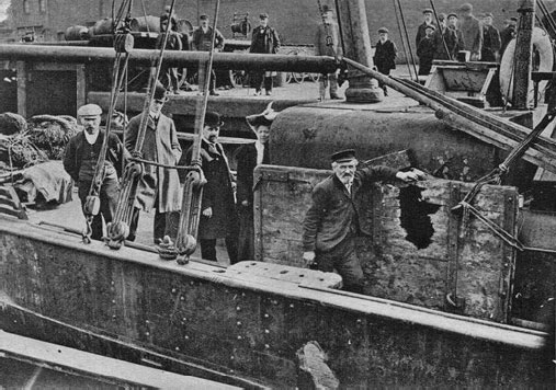 Английские рыбаки показывают результаты обстрела их судов русской эскадрой