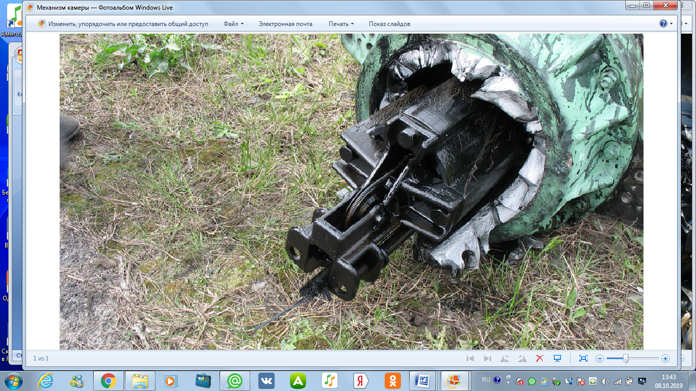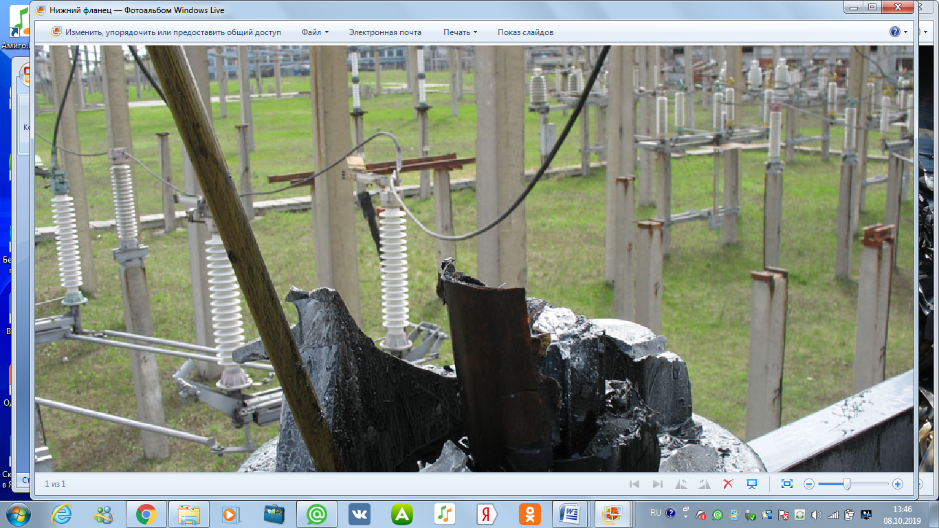 произошло образование трещины (наличие микротрещин) в нижней части фарфора опорного изолятора с последующим изломом во фланце крепления к раме выключателя, что через 25 секунд привело к его падению. В начальный момент падения (выключатель отключен) произошел пробой диэлектрического промежутка контактной системы (3 раза) фазы "В" МВ-110кВ присоединения