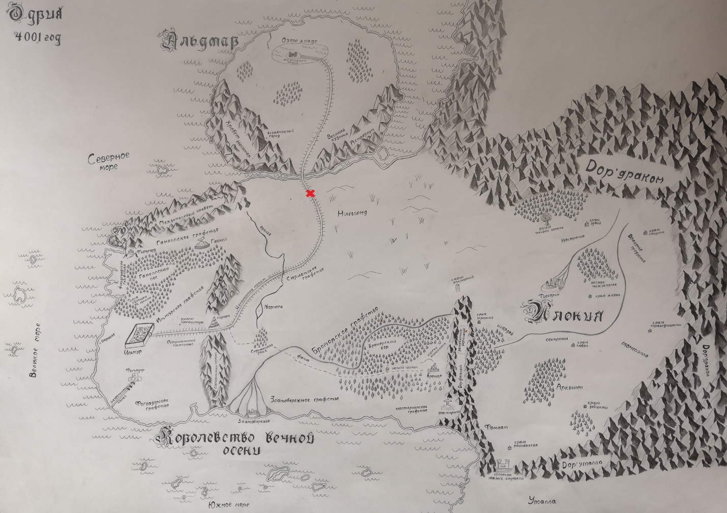 Я размеренным шагом прошёлся к окну и выглянул наружу. Оно выходило на вечно снежные просторы Альдмара. От Изминола вниз тянулась узкая тропа, на которой плечом к плечу могла уместиться лишь пара воинов. Как же аллоры со своими крыльями проходят по ней? Куда ведёт эта дорога, невозможно было разглядеть, ибо пепел и снег, что валили из туч, укрывали собой всё северное королевство. И лишь Творцу известно, какие тайны хранит этот суровый край.