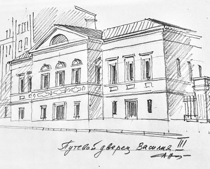 И вот отряд во главе с молодым великим князем Василием уж третий день без передышки скачет в Москву, по непростому пути через Суздаль, сёла Стромынь и Елох. Наконец, на Покровской дороге появился путевой дворец.