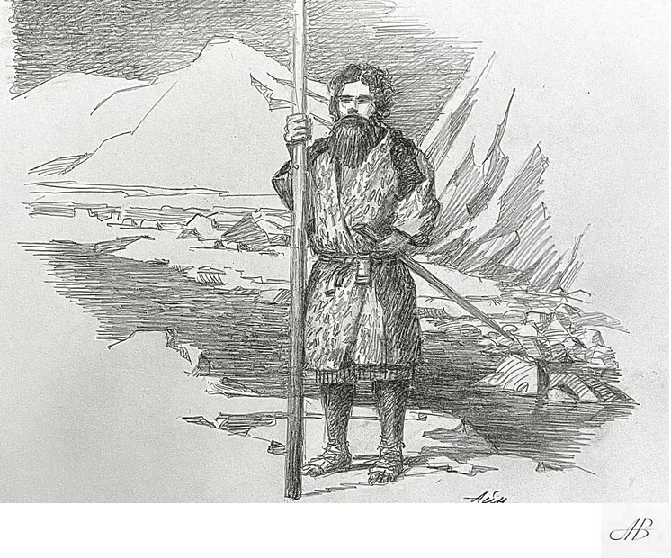 1700 год. Холодный осенний день на Камчатке клонился к концу, а буря свирепствовала в Калыгирской губе Боброва[13] моря, и который день не умолкала. Морские волны с грохотом накатывались на прибрежные скалы и, пенясь, заливали юрты прибрежного поселения камчадалов. Они в ужасе бросали свои жилища и прятались на скалах. Там они, поднимая руки к небу, просили помощи у своих Богов. Но не все камчадалы тряслись от страха.… На скале, наперекор стихии, стояли воины племени камчадалов-ительменов[14], воинственные жители Камчатки во главе с гордым вождём. Воины ожидали нападения с морских островов враждебных айнов, которые часто высаживались в их владениях, в поисках добычи морского зверя. Они напряжённо вглядывались в разгневанное море, словно вызывали его на бой.