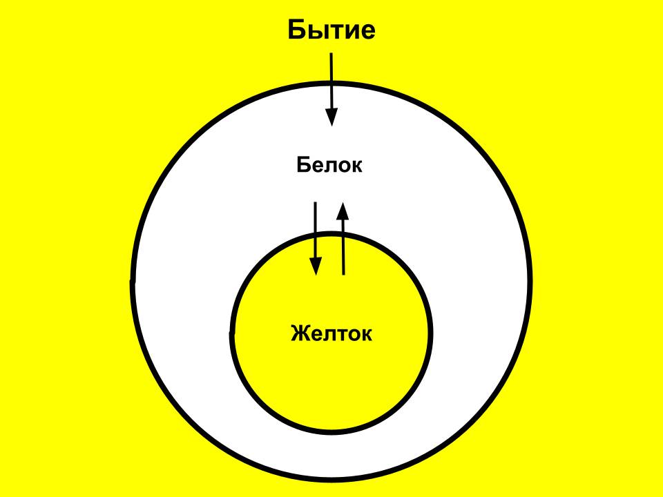 А парадокс парадоксов в том, что мы также можем утверждать, что желток, в свою очередь, является внешним миром для белка!