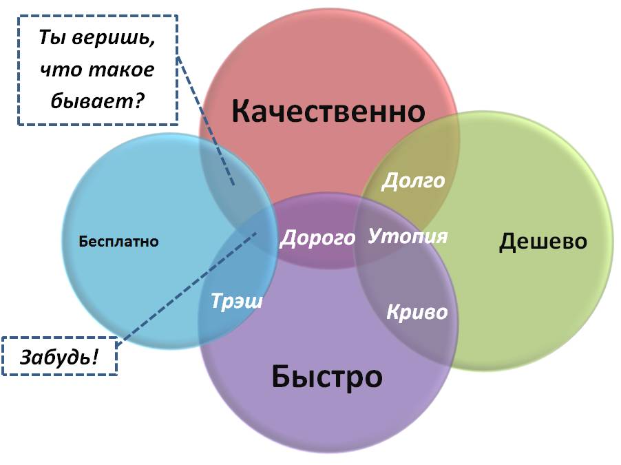 Вообще в любом производстве говорят о важном «треугольнике»: время – качество – стоимость.