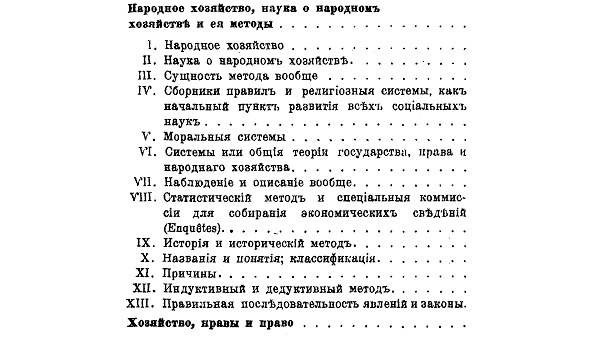 «… в 1900 году он приступил к печатанию курса своих… лекций, который составит обширное руководство – результат 36-ти летних чтений в университете. … Автор излагает в обширном введении свои воззрения на психологические и этические основы народного хозяйства и делает очерки истории экономической литературы и методологии. Дальнейшее изложение разбивается на две книги. В первой рассматриваются земля, люди и техника, как массовые явления и элементы народного хозяйства; во второй – общественный строй его. <…>