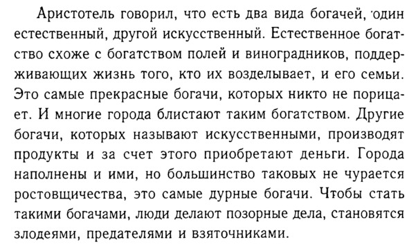 В недавних поисках соответствующей литературы (дополнительно к приведенной мною в предыдущих статьях) я обнаружил несколько очень полезных книг в электронной интернет-библиотеке (см. список). Есть, очевидно, и другие, но для начала исследований по рассматриваемой тематике достаточно и этих, богатых по содержанию. Сразу же отмечу удивительную и приятную мне находку. Жак Ле Гофф привел созвучную моим размышлениям фразу Аристотеля (её несомненно следует отнести к началам системного анализа социально-экономических отношений того периода, которыми обладал Аристотель, – их можно отметить и в других его сочинениях):