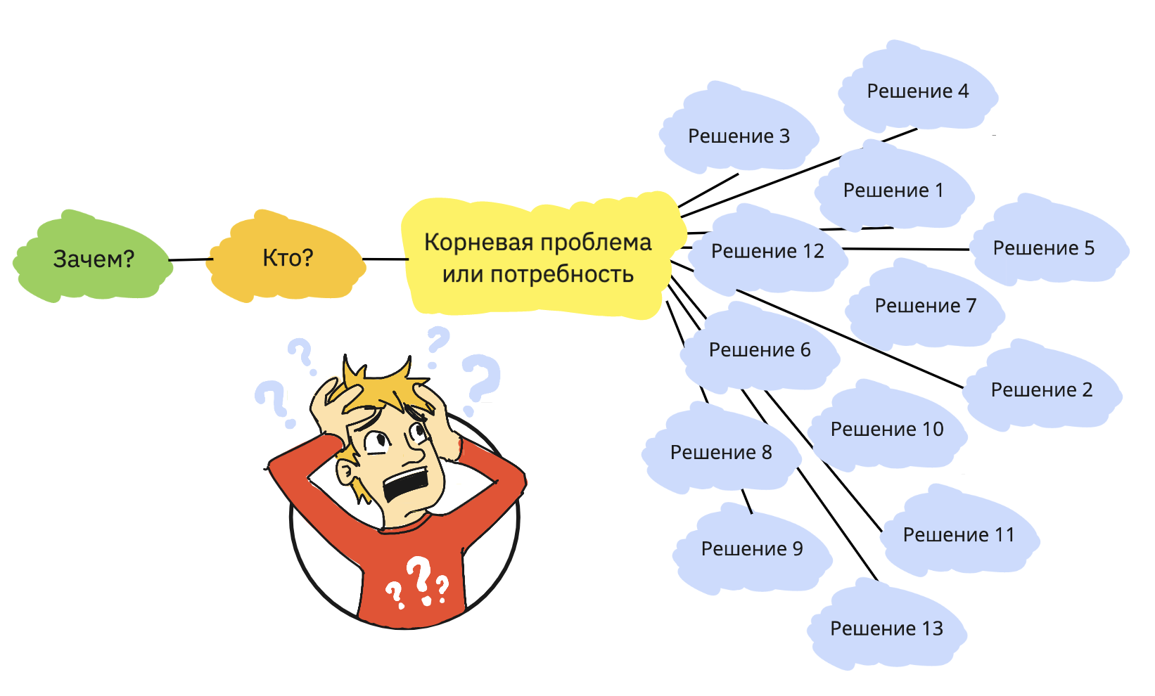 Увидев корневую проблему или потребность, накидываем много возможных решений (рис. 3).