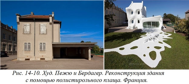 Французские художники Мари Пежю и Кристоф Бердагер при преобразовании невзрачного старого здания, в котором в свое время располагалась тюрьма, затем школа, а потом похоронное бюро, набросили на него своего рода плащ из полистирола (Рис. 14–10).