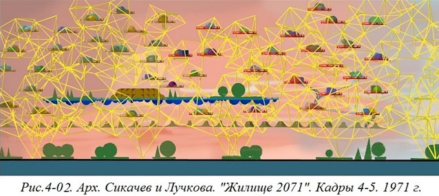 В том 1971 году отечественное жилищное строительство почти целиком состояло из «пятиэтажек». И не случайно, что у многих практикующих архитекторов было ощущение, что в «светлом архитектурном будущем» можно будет, наконец, проектировать дома более высокие. Мы же декларировали, что не в этом прогресс и поэтому написали: «Жилище 2071 – это НЕ секционные и башенные дома, выросшие до 30, 50, 100 (кто выше?) этажей.