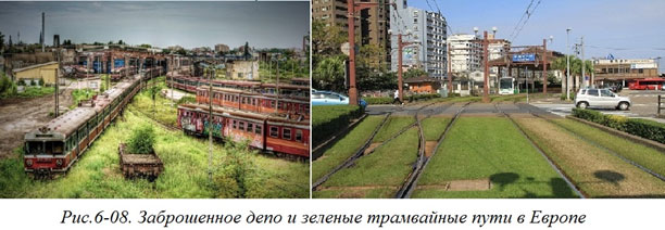 Если раньше готовили узких специалистов для определенных отраслей деятельности, то сейчас нужен человек, который может решать любые проблемы, возникающие в любых отраслях жизни. В прежние годы наше образование было широким, не в ущерб глубине, энциклопедическим. Другой вопрос, что потом нужно было специализироваться. Нужно, чтобы специалист был в состоянии увидеть подобие в самых неожиданных местах. Открытия приходят тогда, когда ты смотришь в разные стороны. А архитектурно-дизайнерские мутации – это всегда открытия. Но для этого нужно научиться смотреть, уметь увидеть нечто цепляющее воображение в том, на что смотришь. Скажем, глядя на заброшенное депо, где трава буквально закрывает рельсы, вполне может возникнуть мысль использовать аналогичный «творческий прием» для существующих улиц с трамвайными путями (Рис. 6–08).