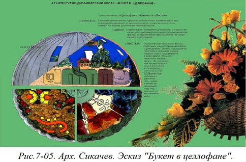 Мое отношение к эскизам долгое время было весьма несерьезным. Я не ценил собственные эскизы. Многие вообще не сохранял. Не подписывал их, не оставлял на них пояснения, к какой работе они относятся. Именно так произошло с моим эскизом под названием «Букет в целлофане (Рис. 7–05).