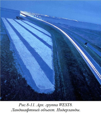 Барьер завершили в 1986 г. За прошедшие годы здесь сформировался новый на 100 % рукотворный ландшафт, включающий появившиеся озера, дамбы, побережья, рекреационные территории, новые жилые образования и промышленные территории. Архитектурной группе West8 предложили разработать проект трансформации песчаных поверхностей в искусственные дюны. Однако вместо этого архитекторы решили на месте огромных площадей насыпанного песка создать огромное плато покрытое раковинами двух цветов – белого и темного (Рис. 8–11).