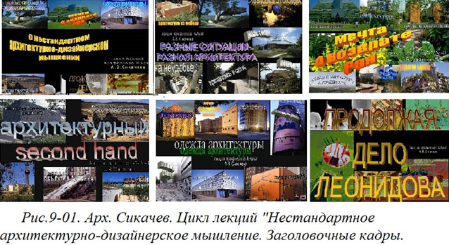 С моей точки зрения самая главная и при этом самая трудная функция специалистов по архитектурно-дизайнерской информации – просветительская. Именно поэтому мной был подготовлен в конце прошлого века цикл лекций под заголовком «О нестандартном архитектурно-дизайнерском мышлении», который можно назвать архитектурно-гуманитарным. Он призван расширять представление студентов о самом понятии творчество (Рис. 9–01).