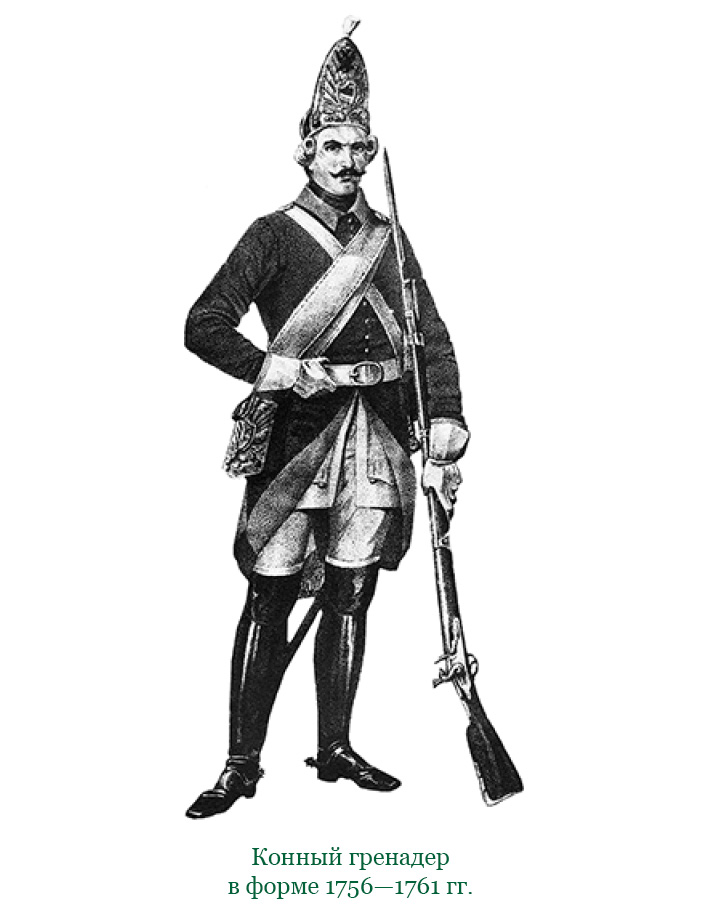 Надевать шапки гранодерские так, чтоб передней край шапки был на самых бровях, мало нечто искося на правую сторону. Медь так чистить, чтоб от нее был блеск. Шапок кроме караула не носить, но ходить в колпаках, колпак тако ж на правую сторону искошать.