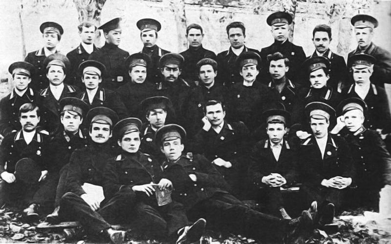 А. Василевский (во втором ряду второй слева) среди учащихся Костромской духовной семинарии. 1914 г.