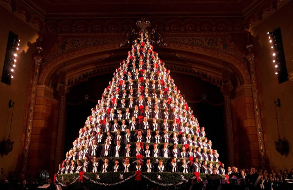 The most short-lived, but certainly extremely unusual Christmas tree was not only seen, but also heard by residents of Michigan. This Christmas tree is assembled from the members of the choir of the Frauenthal Performing Arts Center. And yes, they sing!