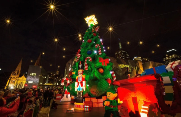 The New Year tree in Melbourne is made of more than half a million Lego pieces. A festive tree stands on Federation Square in Melbourne.