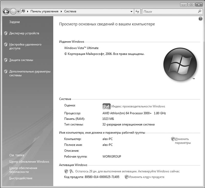 Рис. 1.1. Окно, содержащее индекс производительности системы