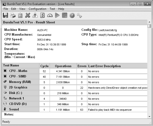 BurnInTest ProСначала необходимо определить, от чего нужно избавиться в первую очередь. Здесь нечему удивляться, особенно если учитывать тот факт, что у каждого устройства есть свой ресурс работоспособности, по истечении которого или по приближению к которому устройство начинает работать со сбоями. Поэтому не должно вызывать никаких сомнений, что такое устройство необходимо удалить из компьютера или заменить его новым, иначе это может привести к нестабильной работе компьютера, или, что еще хуже, к его поломке.