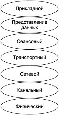 В зависимости от назначения уровни получили следующие названия: физический, канальный, сетевой, транспортный, сеансовый, уровень представления данных и прикладной (рис. 1.1).