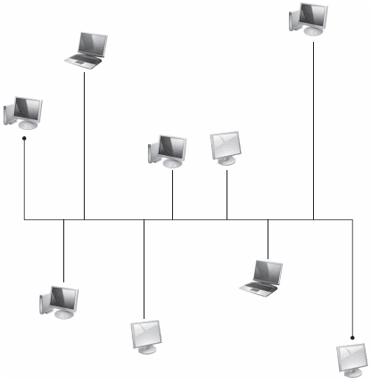 Любой компьютер в такой сети можно назвать как рабочим, так и сервером, поскольку нет какой-либо конкретной выделенной машины, которая осуществляла бы административный или другой контроль. За компьютером такой сети следит сам пользователь (или пользователи), который работает на нем. В этом кроется главный недостаток одноранговой сети – ее пользователь должен не просто уметь работать на компьютере, но и иметь представление об администрировании. Кроме того, ему в большинстве случаев приходится самому справляться с возникающими внештатными ситуациями и защищать себя от разнообразных неприятностей, начиная с вирусов и заканчивая программными и аппаратными неполадками.