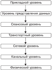 Описываемая модель состоит из семи уровней (рис. 3.1), каждый из которых отвечает за определенный круг задач, осуществляя их с помощью заложенных в этот уровень алгоритмов – стандартов и протоколов. Для связи между уровнями используются процедуры взаимодействия. Таким образом, выполнив свою часть задачи, нижестоящий уровень передает готовые данные вышестоящему. Вот и получается, что, пройдя всю цепочку из семи уровней, на выходе получаются готовые к «употреблению» данные. При этом они успевают должным образом закодироваться или раскодироваться, пройти проверку целостности и многое другое.