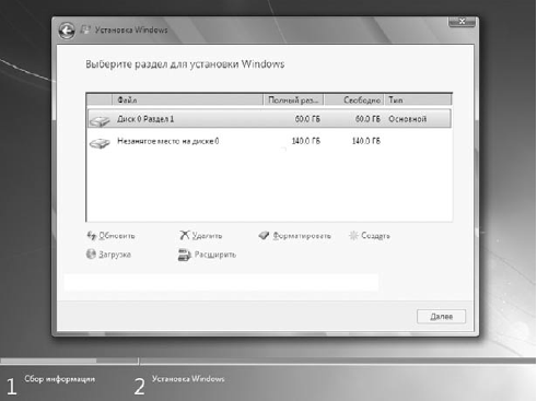 После добавления нового раздела вы увидите его в списке разделов, доступных для выбора (рис. 4.7). Вам останется только выделить его и нажать кнопку Далее.