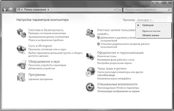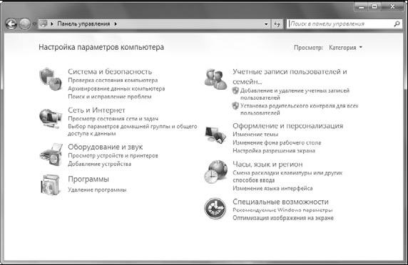 Рис. 3.1. Панель управления Windows в режиме просмотра категорий