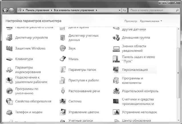 Рис. 3.3. Панель управления Windows в режиме просмотра значков