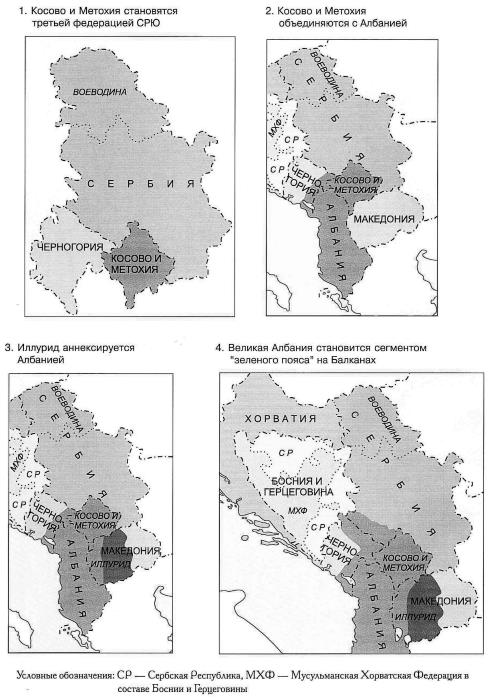 значительное усиление исламского фактора на Балканах в процессе суверенизации Косово и Метохии, возможность создания Великой Албании при возрастании лидирующей роли Турции в регионе. Такой вариант изменения геополитической ситуации означал бы не только дальнейшее повышение конфликтного потенциала в зоне дуги нестабильности, но и резкое ослабление, даже возможную гибель югославянской православной цивилизации;