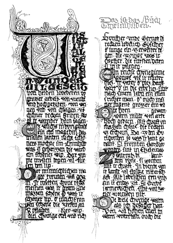 Страница средневековой рукописи «Песни о Нибелунгах»