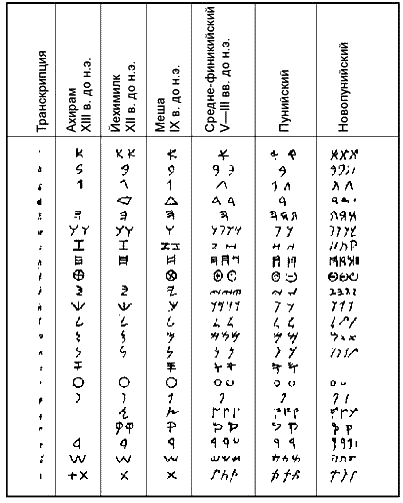 Сами же финикийцы, где бы они ни жили, твердо придерживались своего собственного языка и письменности, хотя со временем в различных областях их расселения появлялись свои диалекты. Понемногу менялось и начертание букв.