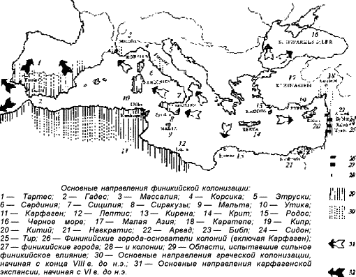 Время начала колонизации – ХII век до нашей эры – отнюдь не случайно. В более ранний период почти вся морская торговля находилась в руках критян и ахейцев. После гибели микенского общества торговля между Востоком и Западом оказалась в руках финикийцев. В эпоху великого переселения «народов моря» их страна в основном избежала разрушения.