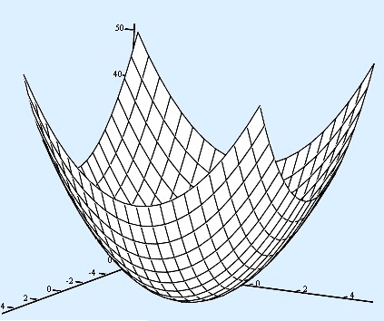 Другие математические функции, например, как эта: z(x,y)=x2+y2, могут создавать куда более сложные объемные фигуры.
