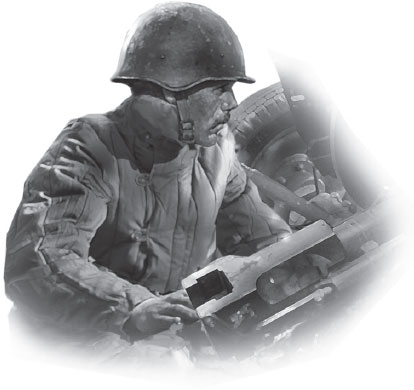 Неожиданно сквозь постоянный шум разрывов послышался слабый стон. Так как других планов у меня все равно не было, я поспешил в ту сторону, посмотреть, не нужна ли моя помощь. В слабом свете зари мне удалось разглядеть сидевшего на ящике раненого солдата, держащегося за окровавленную ногу и тихонько ругающего немцев. На нем была форма бойца Красной армии начала сороковых годов, и я облегченно вздохнул, догадавшись, что тут происходит:
