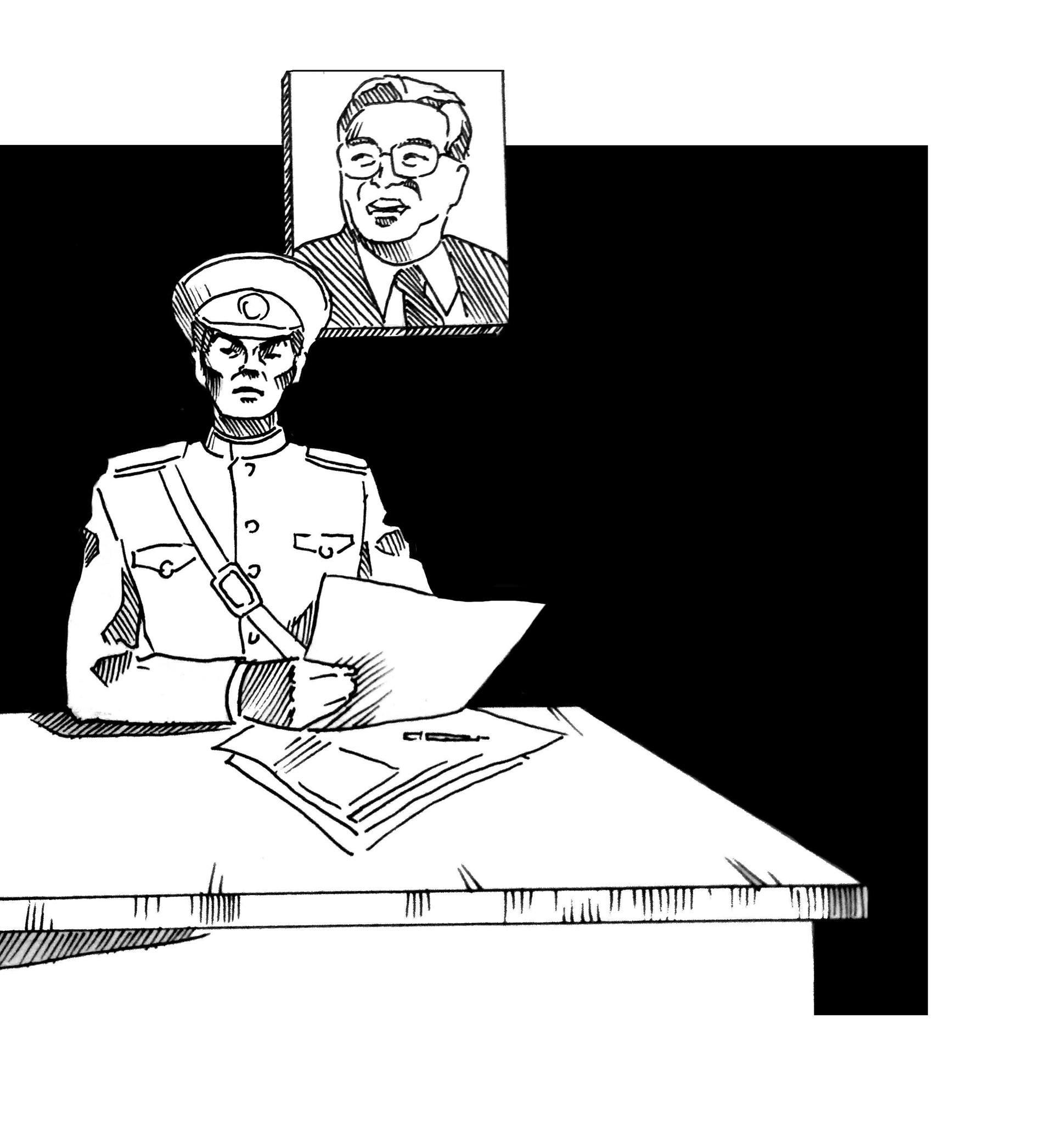 – Товарищ Сео Хан Ыль проверьте, кто из солдат пришивает пуговицы черной, а не зеленой ниткой.