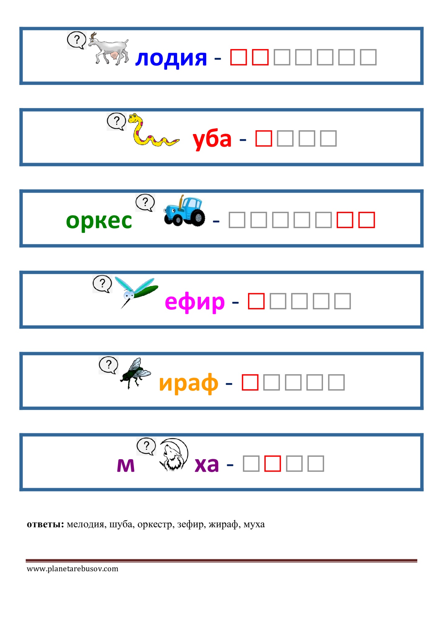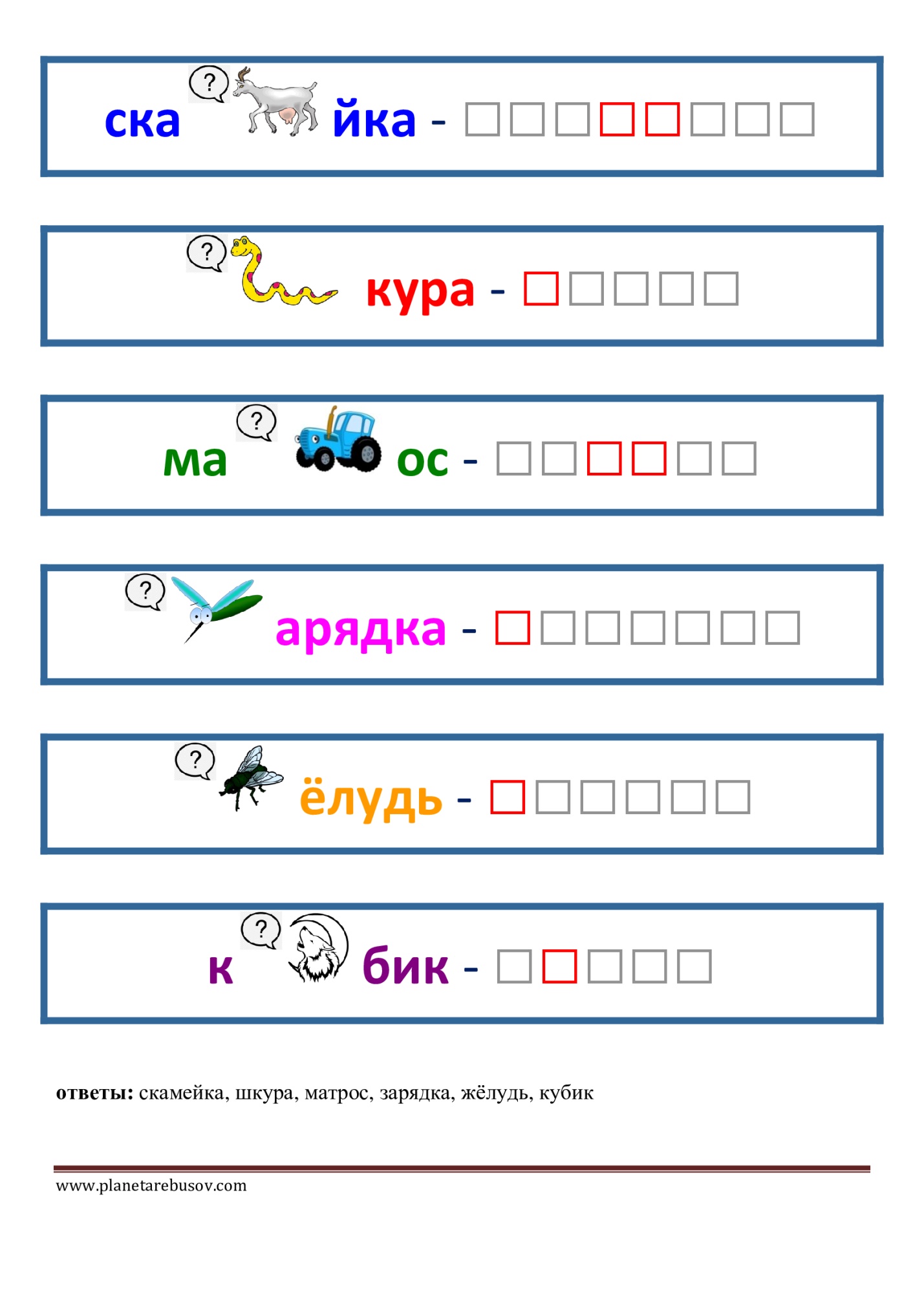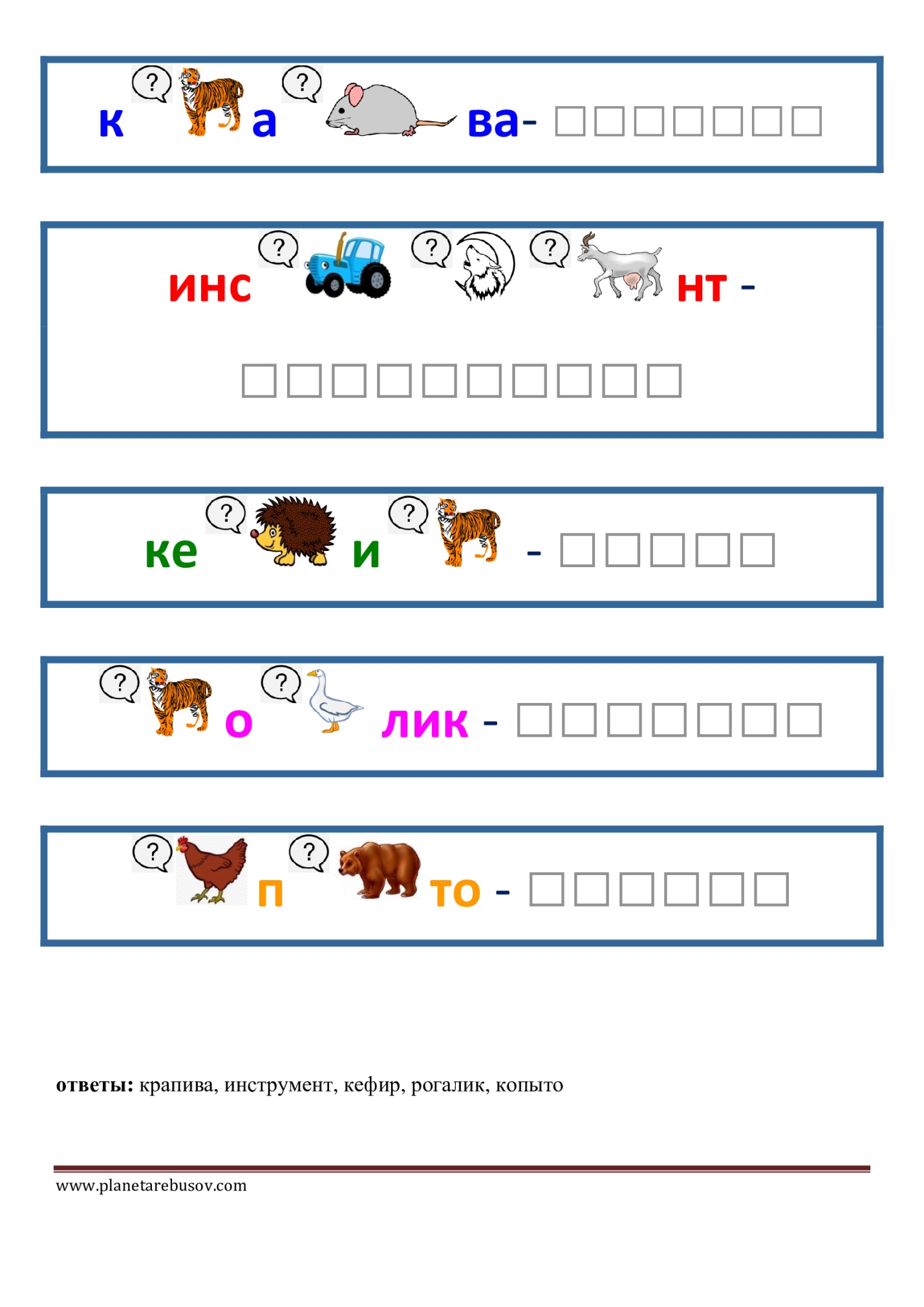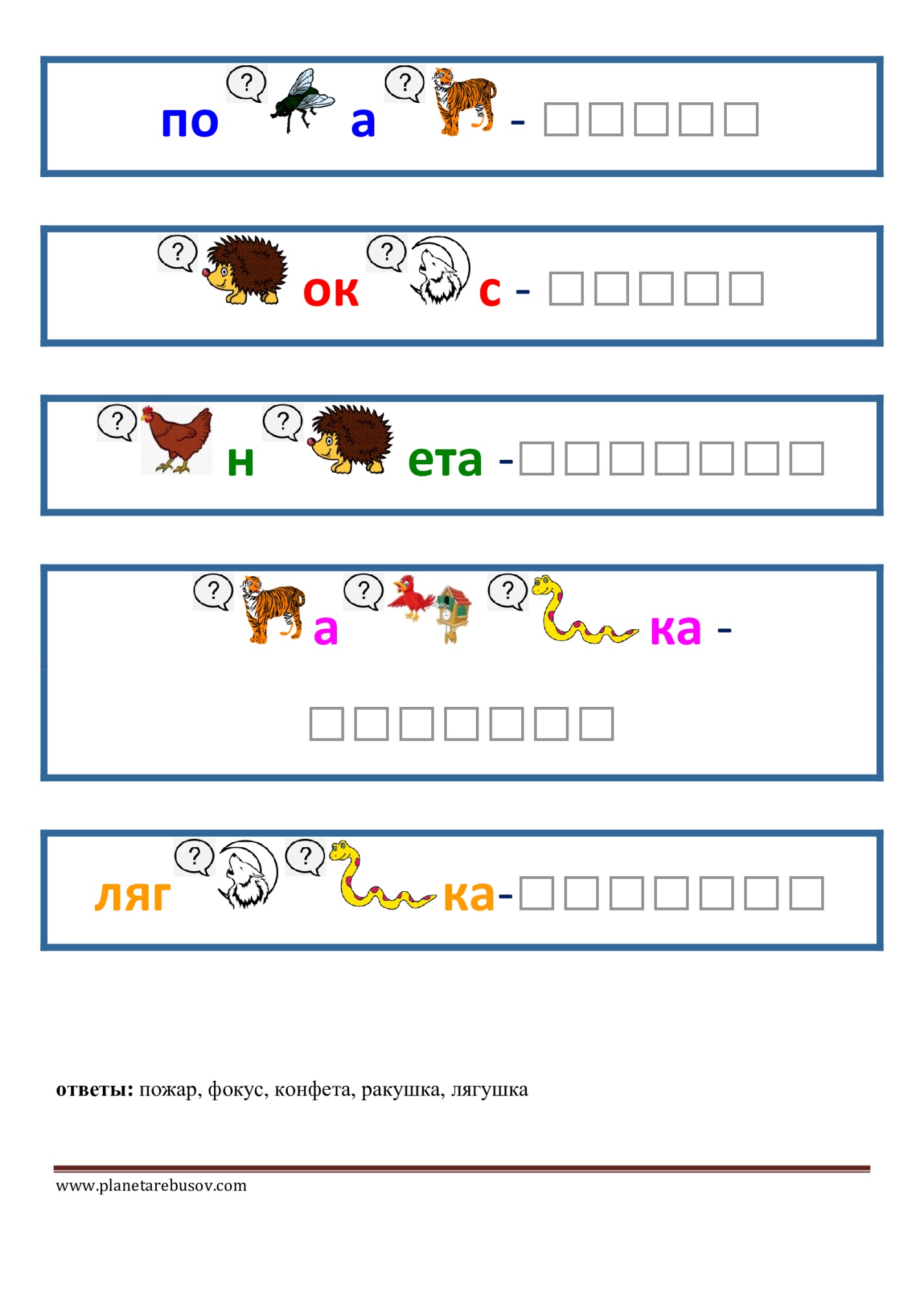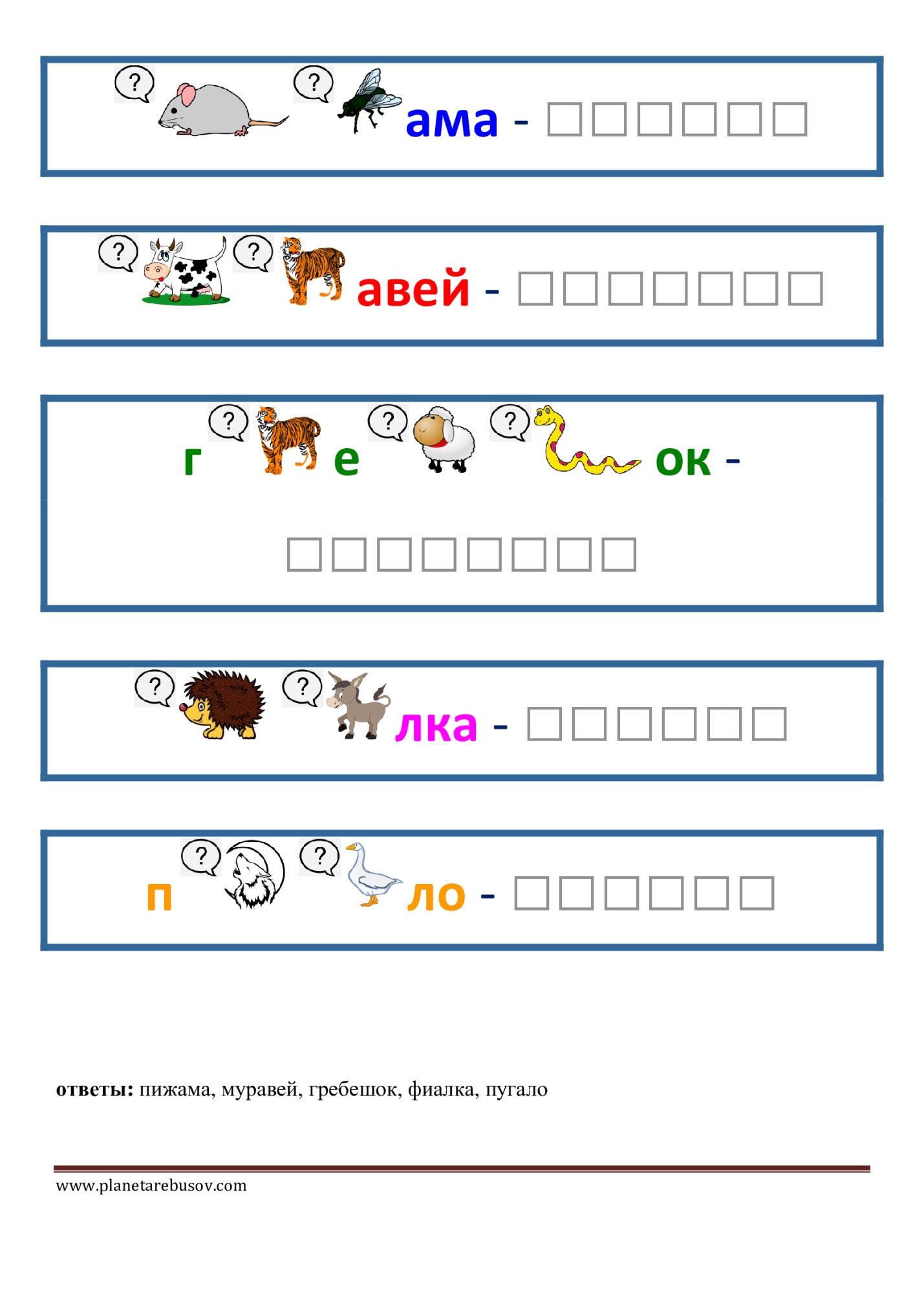 Ребусы, составленные автором для удобства, разделены на возрастные категории: