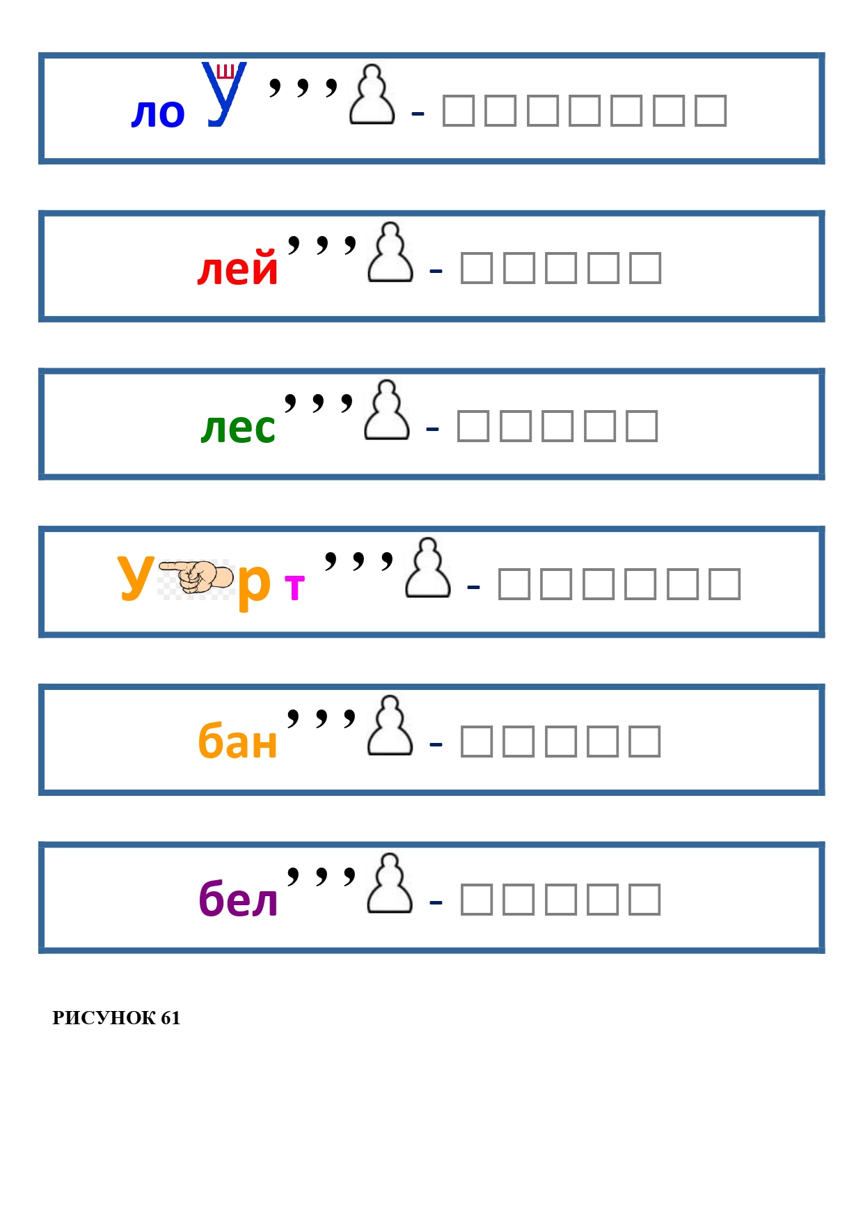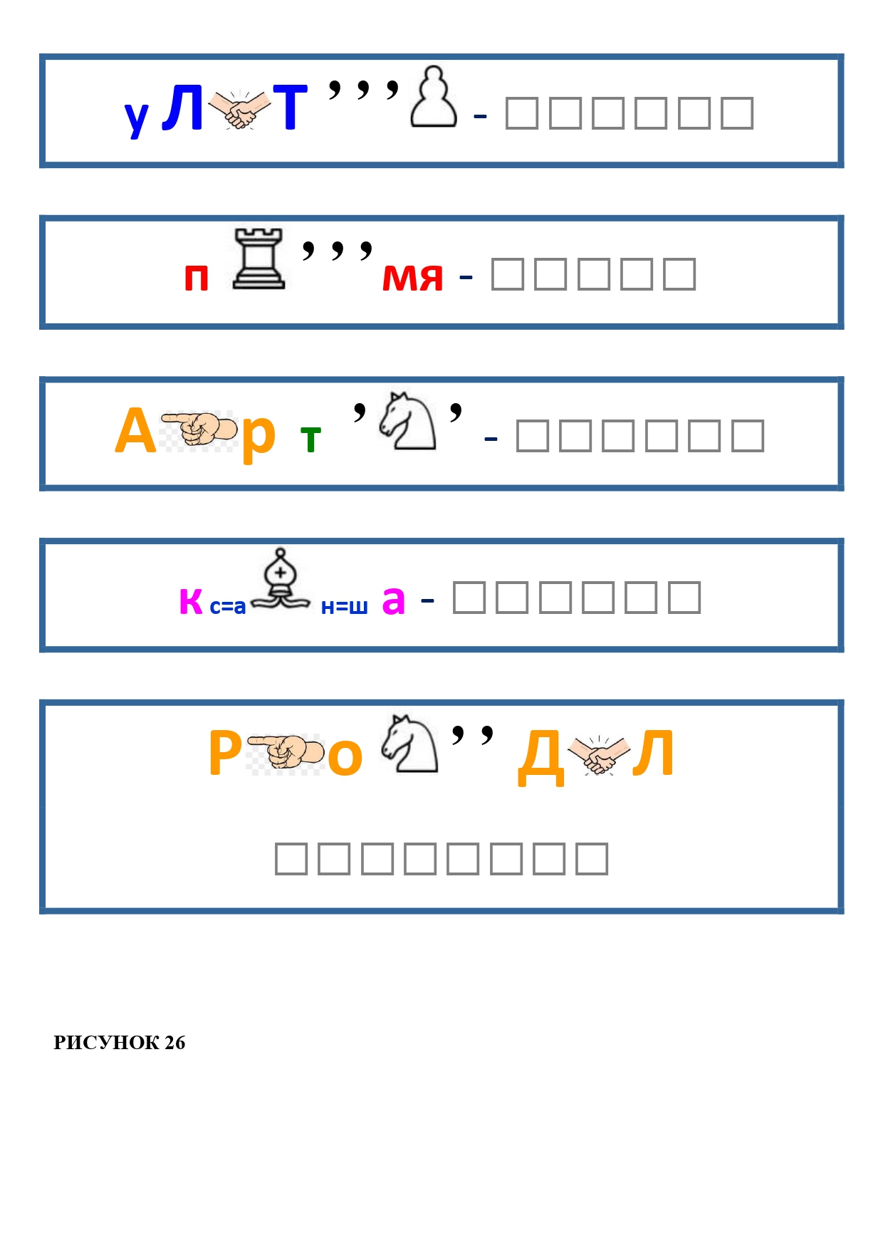 РИСУНОК 6: ладошка, балалайка, скорпион, словарик