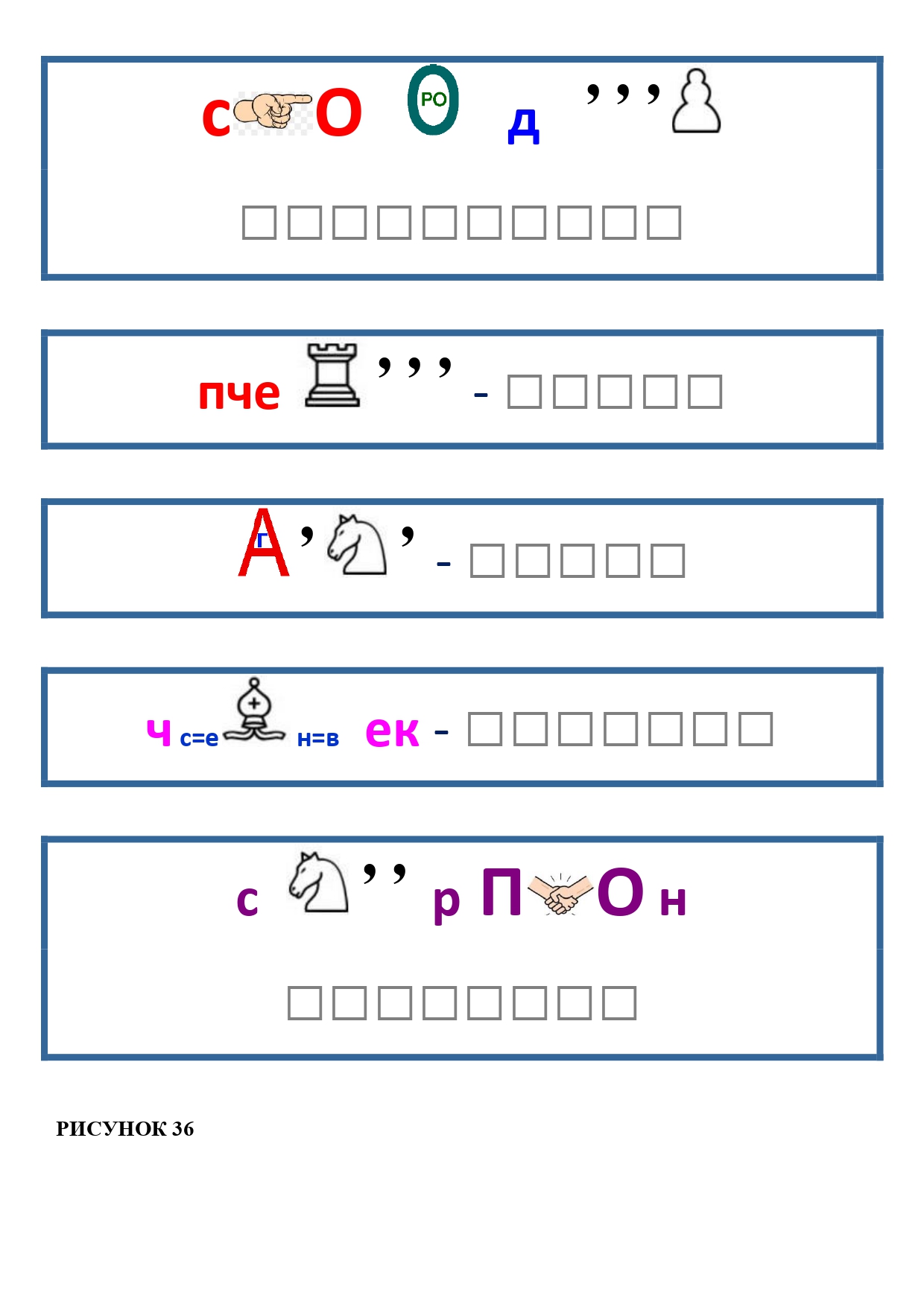 РИСУНОК 36: сковородка, пчела, вагон, человек, скорпион