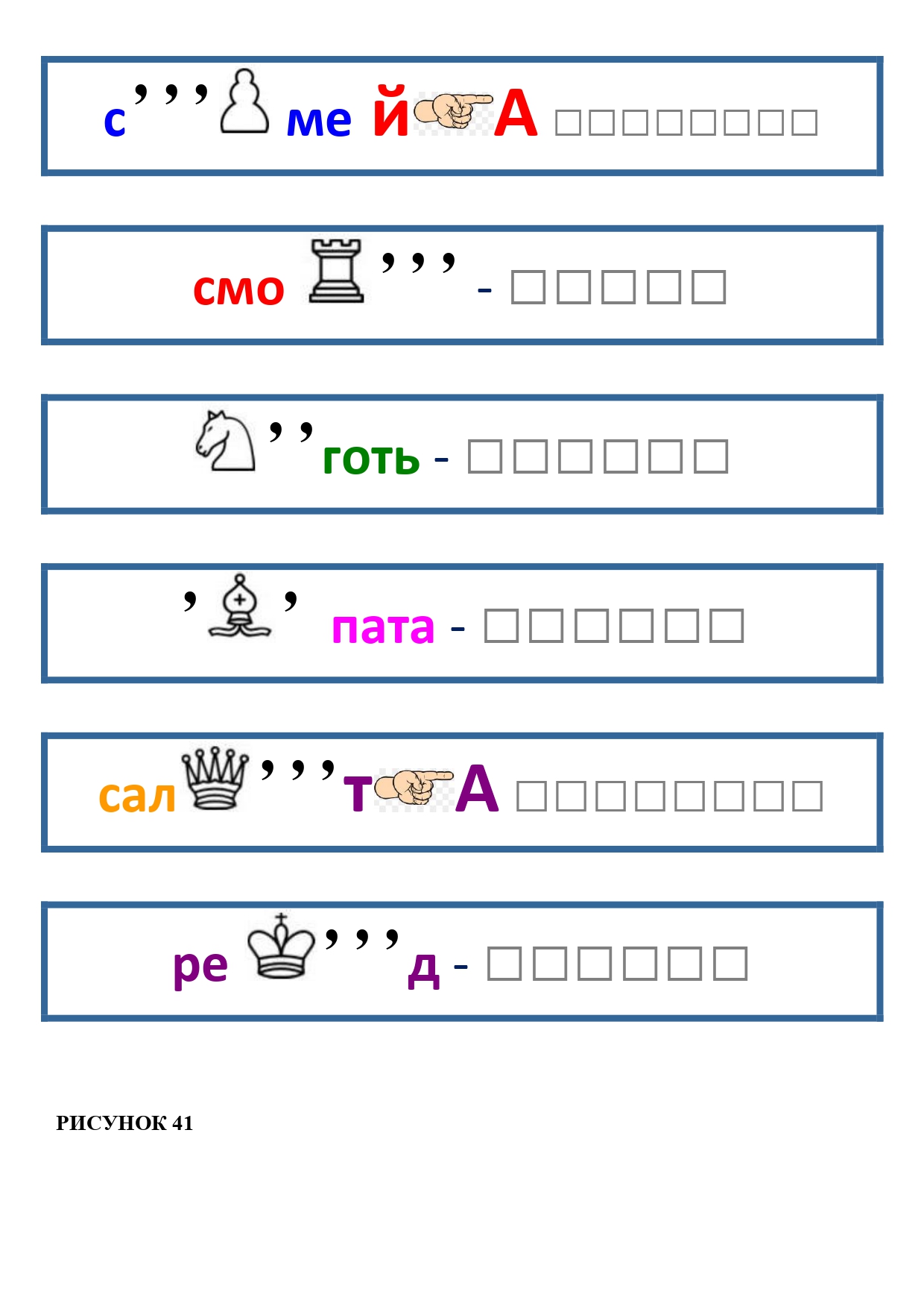 РИСУНОК 41: скамейка, смола, коготь, лопата, салфетка, рекорд