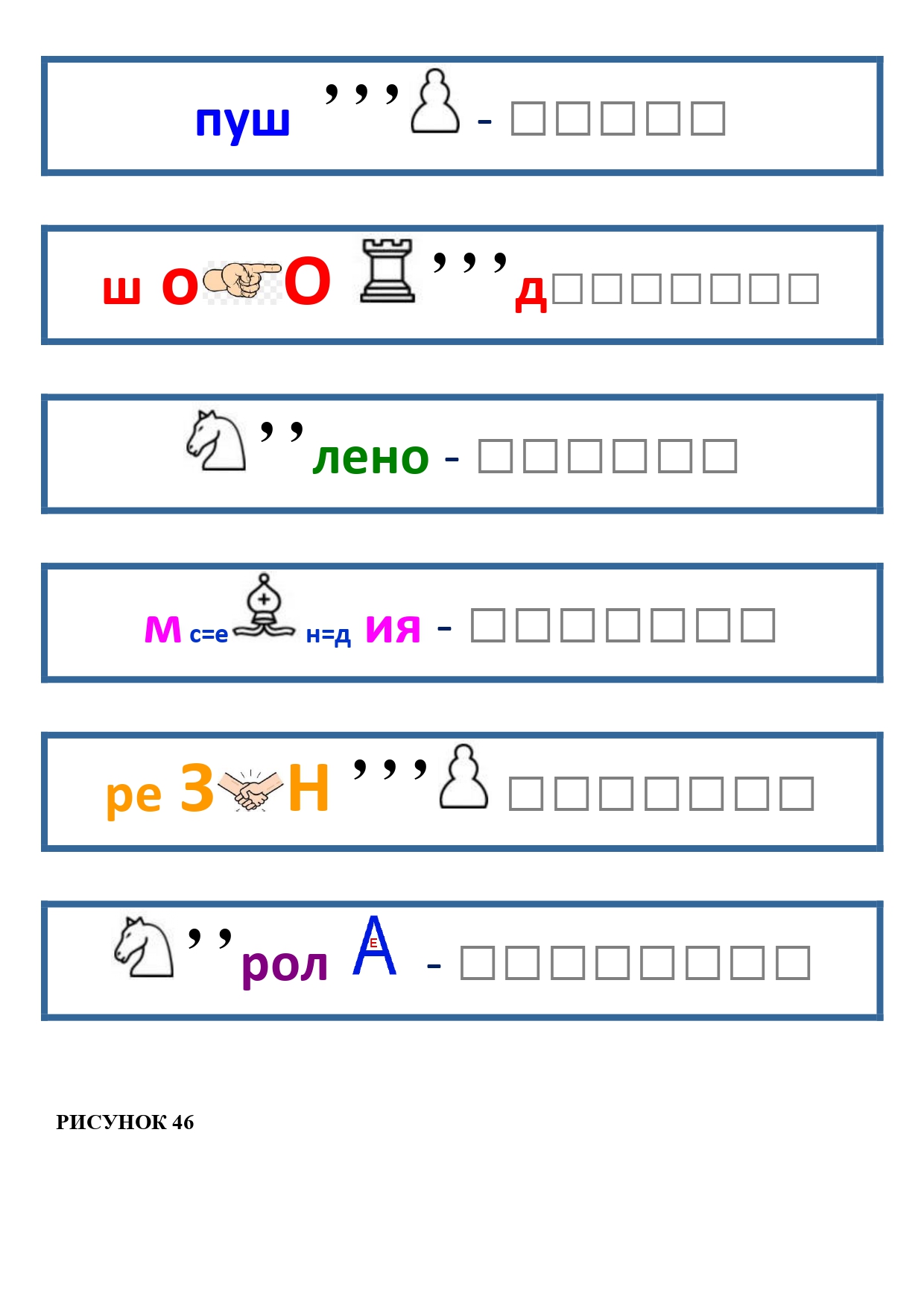 РИСУНОК 46: пушка, шоколад, колено, мелодия, резинка, королева