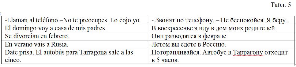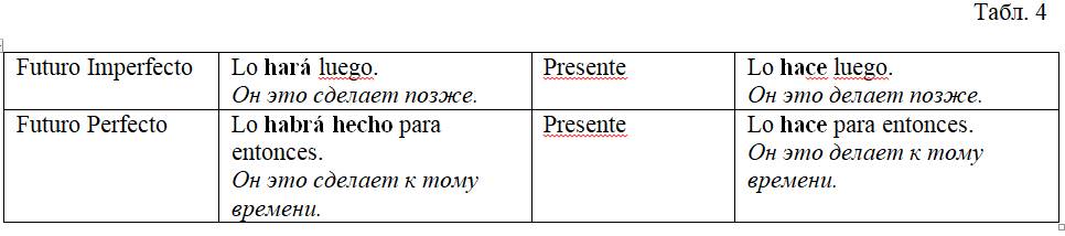 С целью придания уверенности в реализации будущих действий, в испанском языке вместо Futuro Imperfecto и Futuro Perfecto применяется Presente (табл.4).