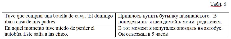 Аналогично, при уверенности в реализации будущих действиях в прошлом (которые также не представляли очевидных фактов на тот момент, см. рис.1), вместо Condicional используется Pretérito Imperfecto (табл. 6).