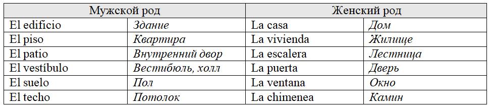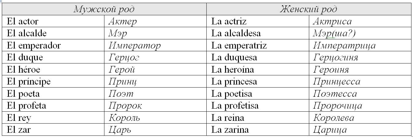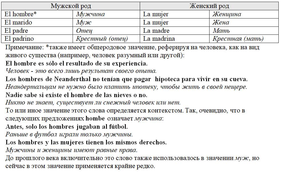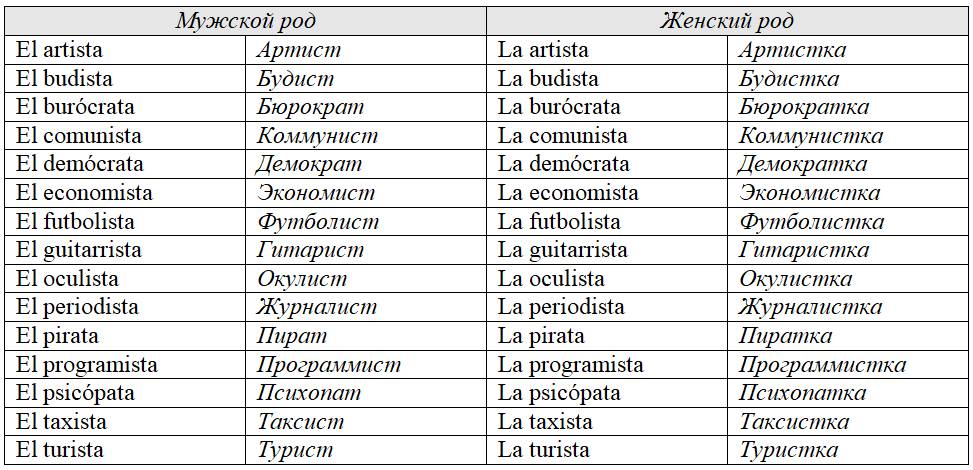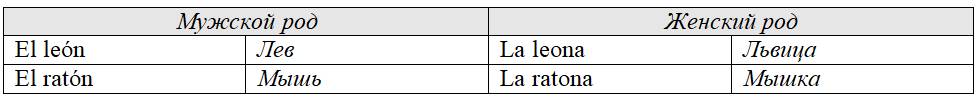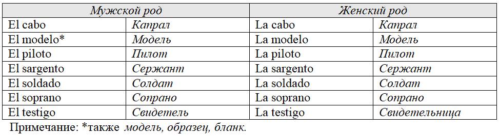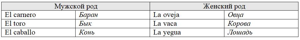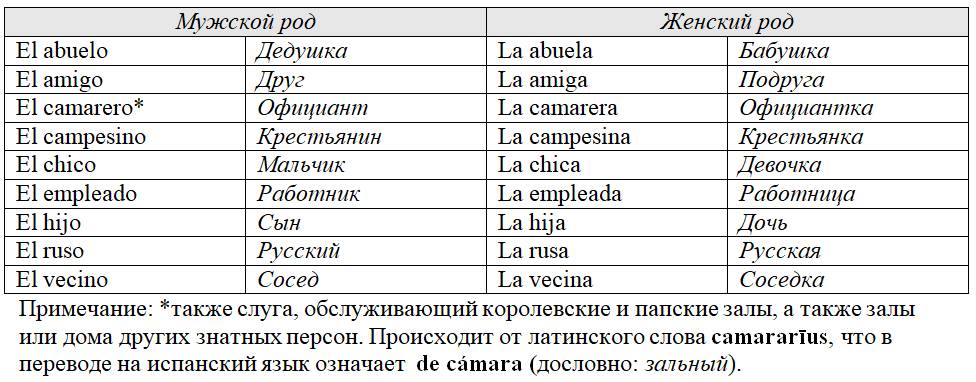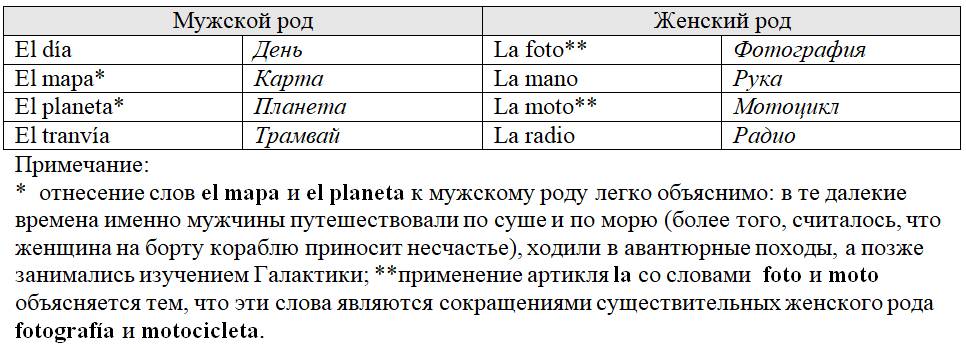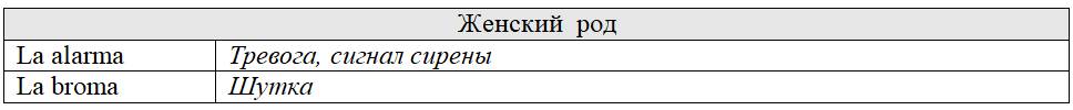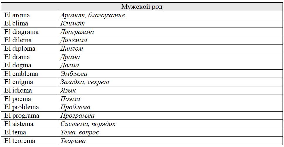 2. Род этих существительных в испанском языке, в большей части, совпадает с их родом в русском языке.