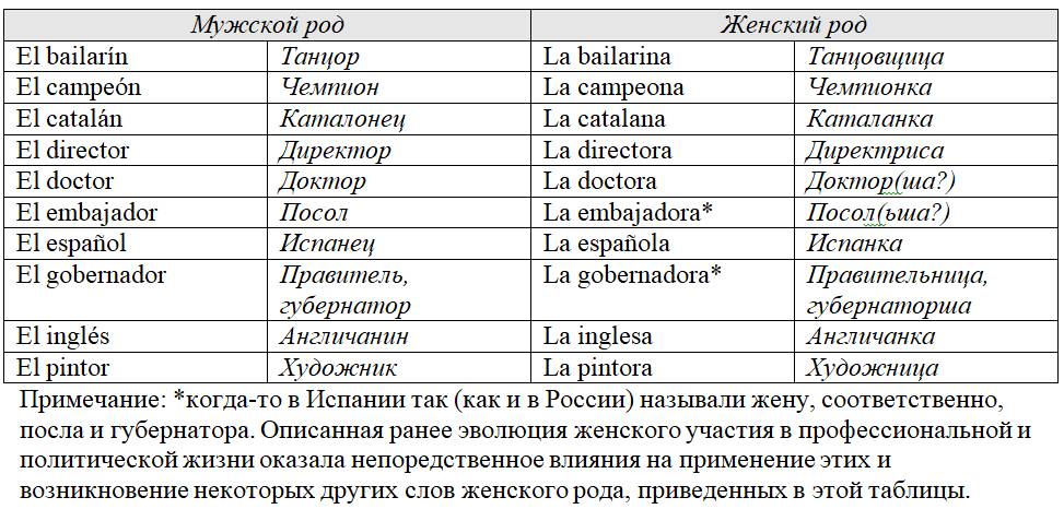 Как уже отмечалось ранее, мужской род в испанском языке – базовый. Имена существительные, обозначающие лиц женского рода, обычно формируются от аналогичного существительного в мужском роде, но не наоборот. Это как при сотворении мира, сначала Бог создал Адама, а затем из его ребра сотворил Еву.