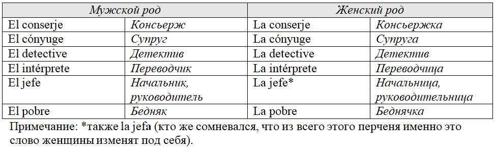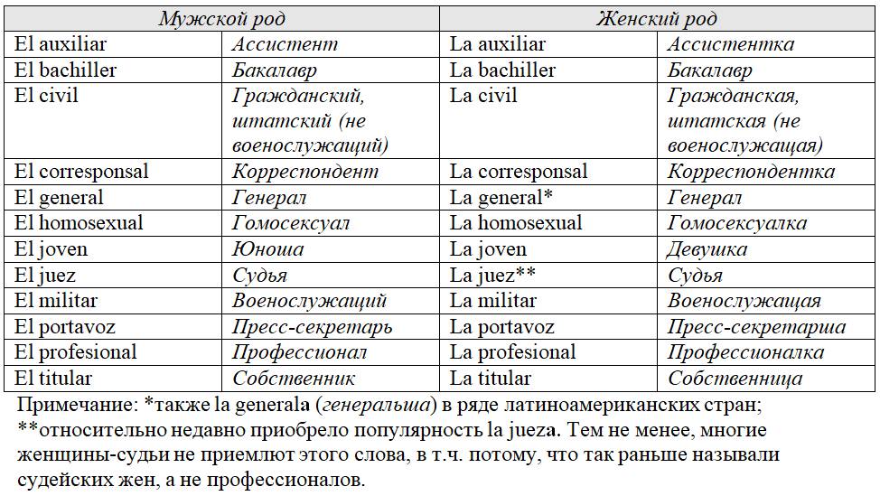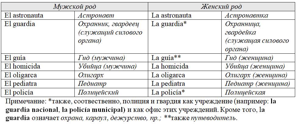 К таким понятиям в испанском языке, как и в русском, среди прочих относятся: el bebé (младенец, детеныш), el fantasma (призрак), el miembro (член), el personaje (персонаж), la victima (жертва).