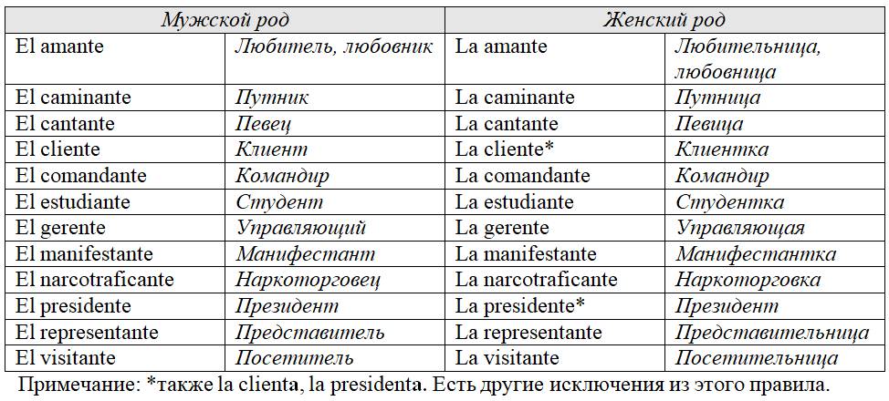 Обычно, в учебной литературе приводится одно и то же, причем единственное исключение из этого правило (el joven/la joven – юноша/девушка), что создает впечатление об его уникальности. Однако, это впечатление ошибочное: до сих пор сохранился ряд других существительных с неизменным окончанием, которые конвертируются в женский род способом В (подробнее см. ниже).