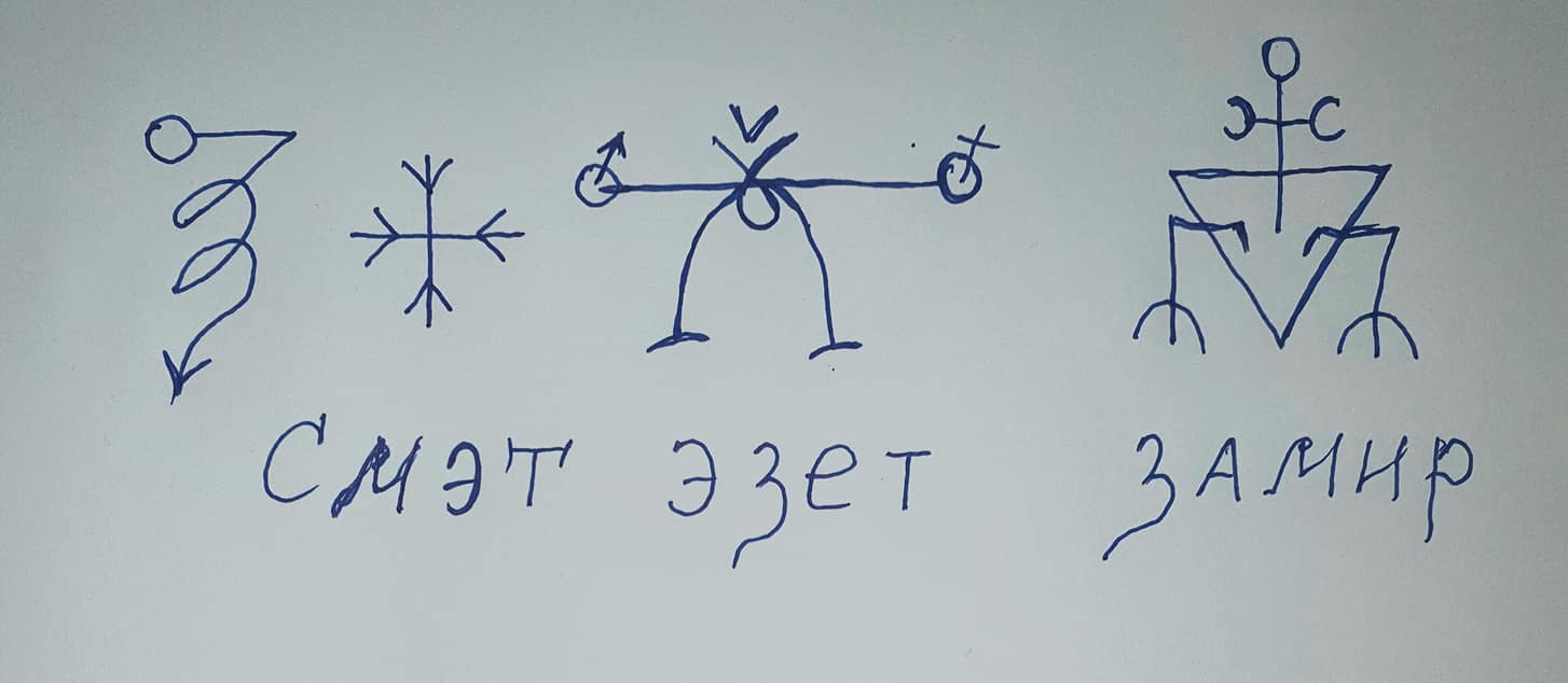Хозяйка, то есть жена рисует столько знаков, сколько их по счету семьи, в раздел имена пишутся имена свои и детей.