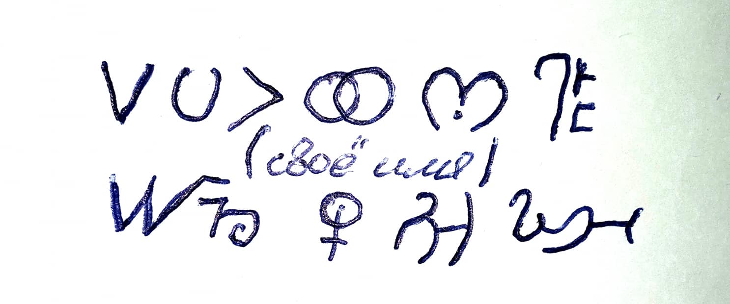 На чистом листе бумаги нарисуйте знаки, впишите свое имя в скобках.