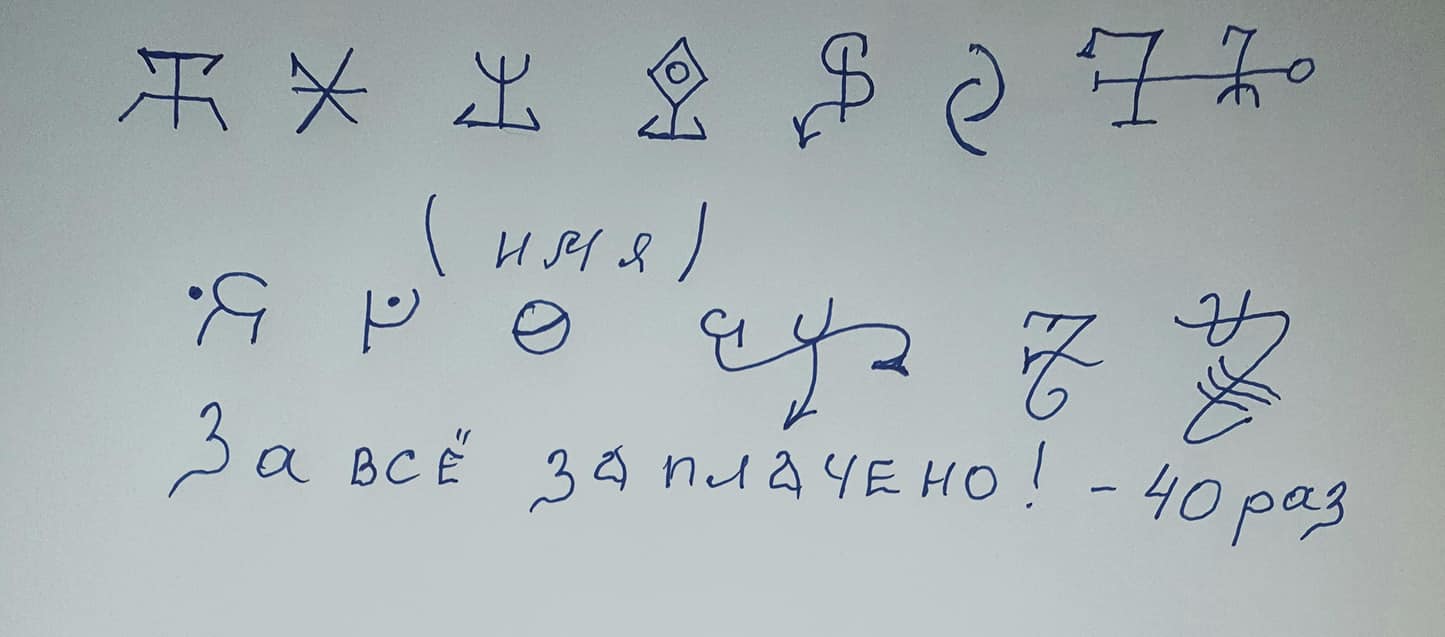 Дома в пятницу после захода солнца, проткните палец медицинской иглой, каплей крови смажьте знаки со словами....