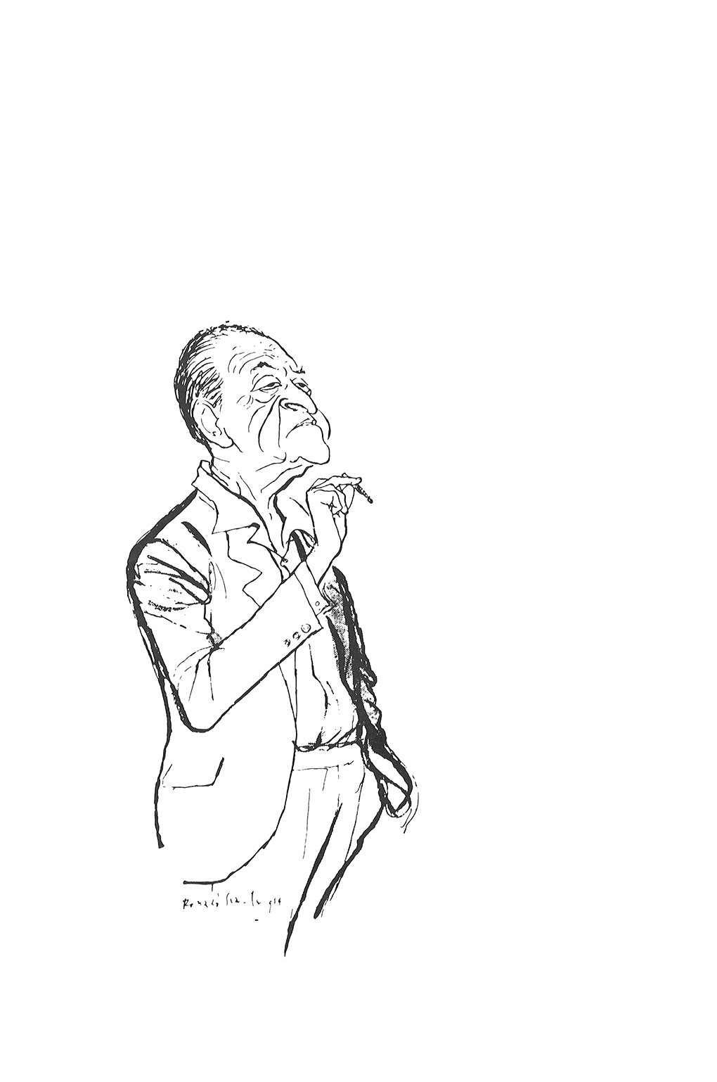 В лондонской галерее Тейт висит запоминающийся портрет. На ярко-желтом фоне изображен сидящий на плетеном табурете пожилой человек. Сидит, положив ногу на ногу, руки сложены, как у первоклассника, спина прямая, серые отглаженные брюки со стрелкой, бежевый пиджак, бежевые – в тон пиджаку – носки, желтые, чуть светлее яичного фона, мокасины, на шее – заправленный в пиджак длинный, почему-то красный шарф. Уголки тонких губ презрительно опущены, длинный, вислый нос, дряблые щеки, тяжелая челюсть, иронический, всеведущий взгляд карих глаз. «Уж я-то вам цену знаю!» – словно хочет сказать этот устремленный поверх зрителя скептический, больше того – брезгливый, недоверчивый взгляд.